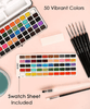 Aquarelverfset bevat hoogwaardige aquarelverf van artistieke kwaliteit die gemakkelijk mengt en veel kleuropties biedt, zodat je geen tijd hoeft te besteden aan het mengen van aangepaste kleuren. De 50 unieke kleuren zijn zorgvuldig geselecteerd om te voldoen aan de basisbehoeften van het dagelijkse schilderen. Gebruik deze briljante kleuren in dit palet om een verscheidenheid aan effecten te bereiken, van gewaagde, levendige afbeeldingen tot delicate aquarelwashes!