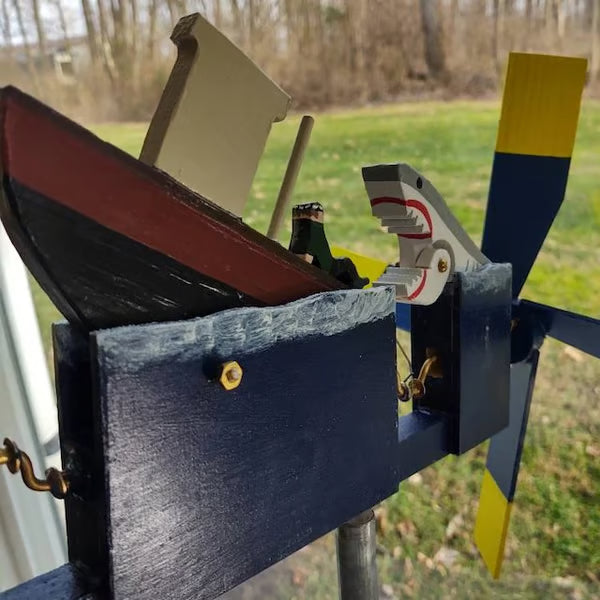 “Je hebt een grotere boot nodig.” Wie kan die epische zin uit de film “Jaws” nu vergeten? Dit unieke tuinornament zal ongetwijfeld een hit worden in elke tuin. Ze draaien en tollen zelfs bij het minste zuchtje wind.