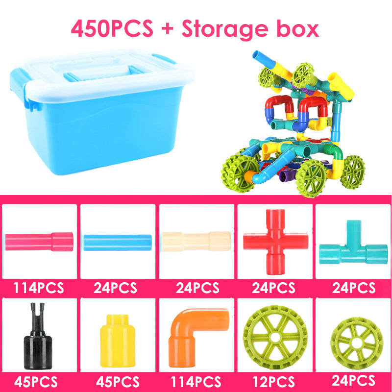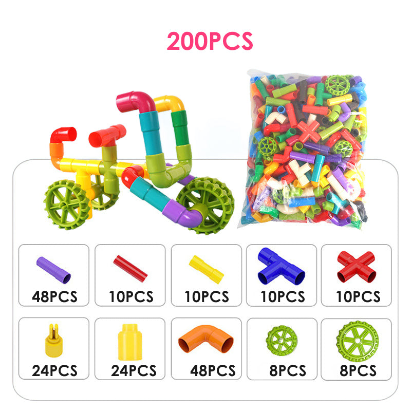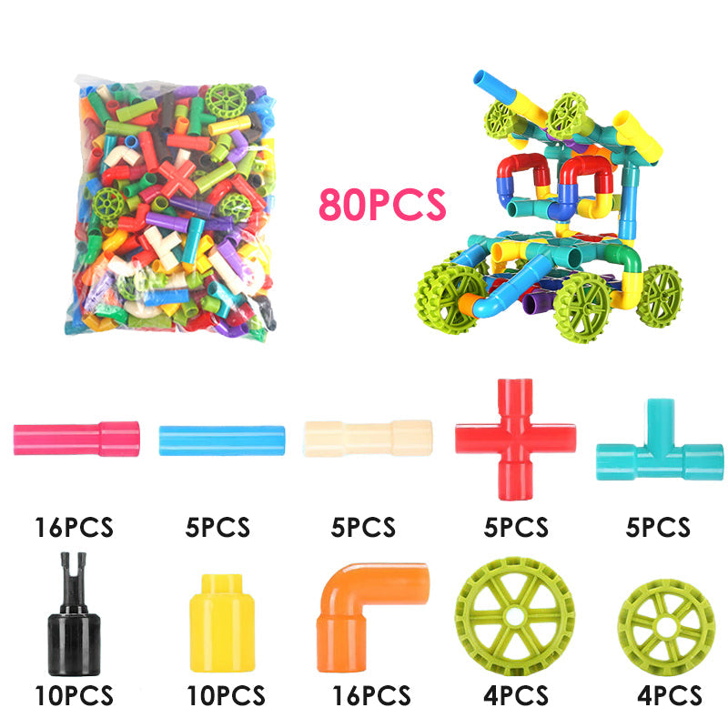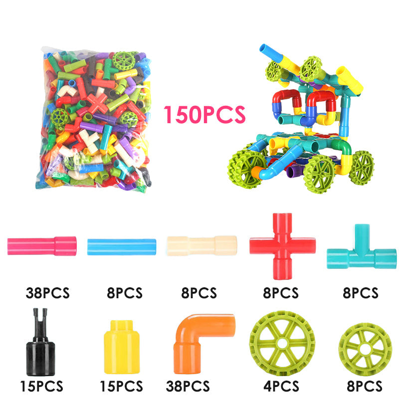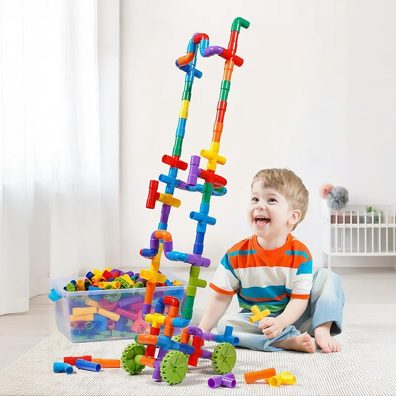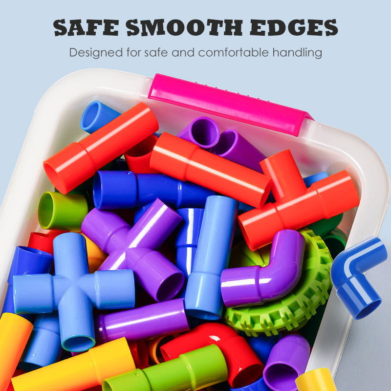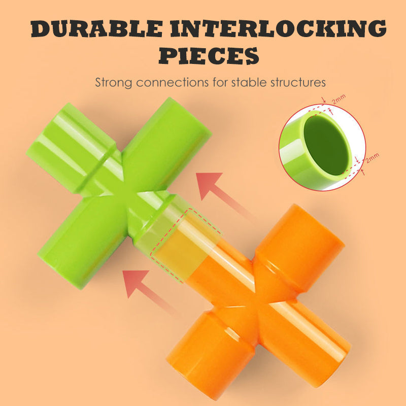 EENVOUDIG VERGRENDELSYSTEEM - De buizen en verbindingsstukken klikken stevig in elkaar, maar zijn eenvoudig genoeg voor jonge kinderen om in elkaar te zetten, waardoor ze zelfstandig en met vertrouwen hun fantasierijke bouwwerken kunnen maken.