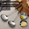 2-IN-1 ONTWERP - De 2-in-1 roestvrijstalen roerbaklepel combineert een spatel en lepel voor veelzijdig koken. Roerbak, schep en serveer met gemak, vereenvoudigt het bereiden van maaltijden en bespaart tijd, ideaal voor soepen, stoofschotels en meer.