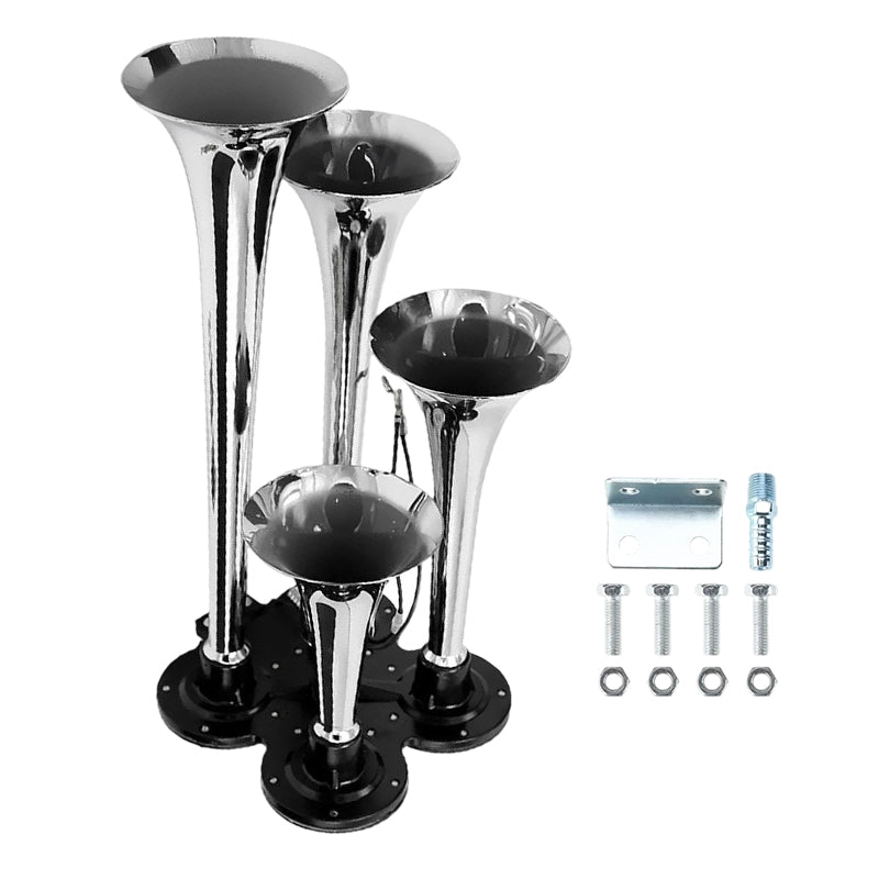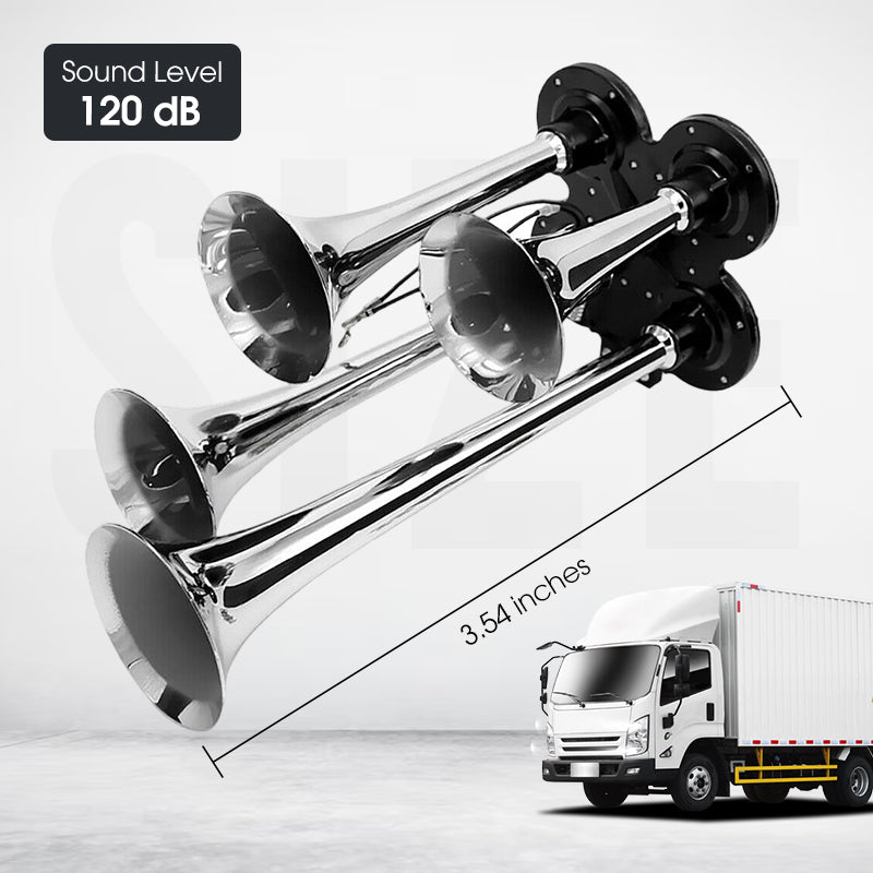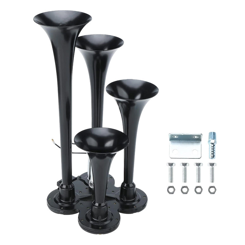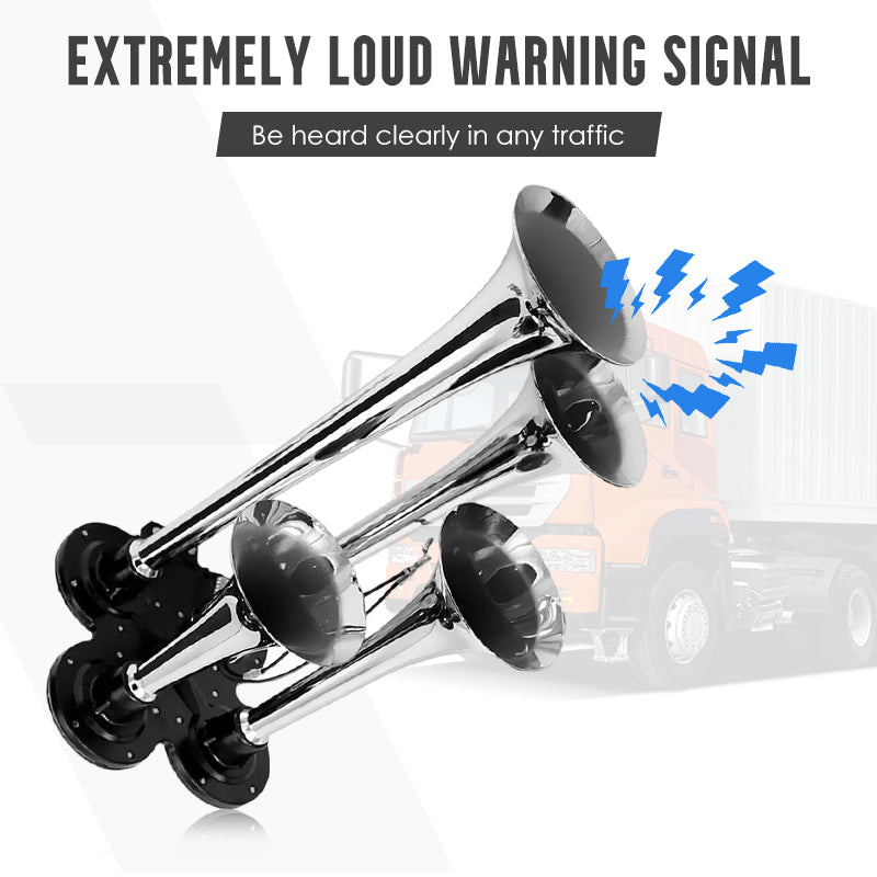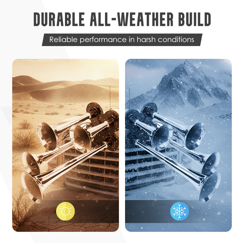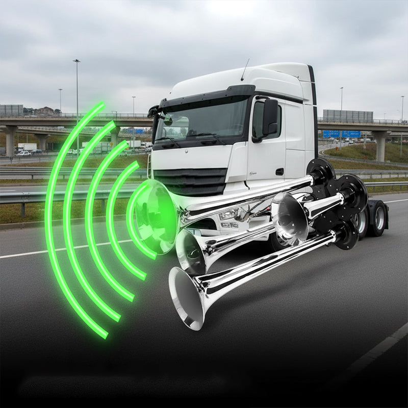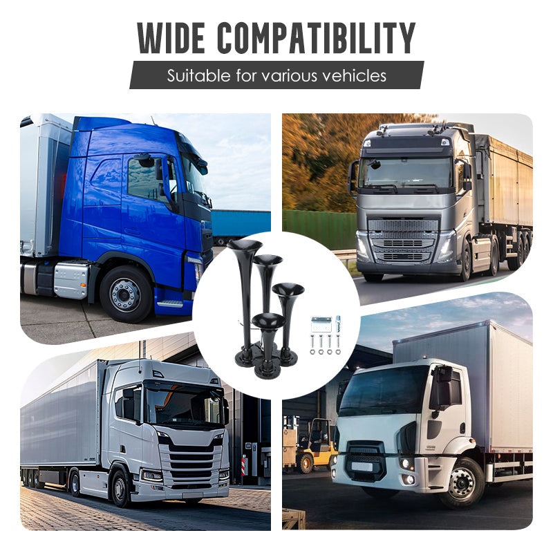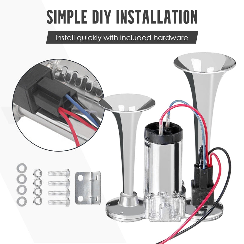 KRACHTIG DUBBEL TROMPETONTWERP: Levert een extreem luid en doordringend geluid, zodat uw waarschuwingssignaal duidelijk hoorbaar is voor andere bestuurders in druk verkeer of bij slecht weer, wat uw rijveiligheid aanzienlijk verhoogt.