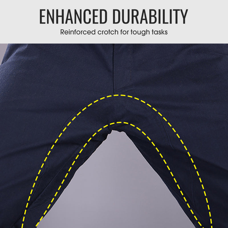 VERBETERD DUBBELLAAGS VERSTERKT KRUIS: Het dubbellaags versterkte kruisontwerp zorgt voor extra duurzaamheid, vooral tijdens zware taken. Deze verbetering verhoogt de weerstand tegen scheuren en slijtage, waardoor de broek perfect is voor knielen, strekken en herhaalde bewegingen.