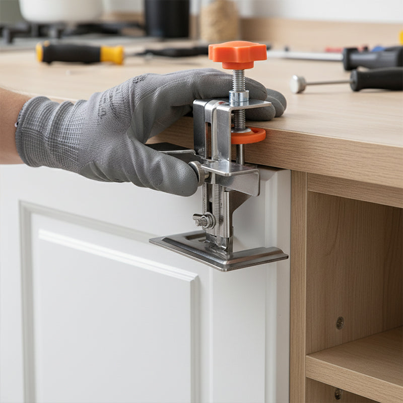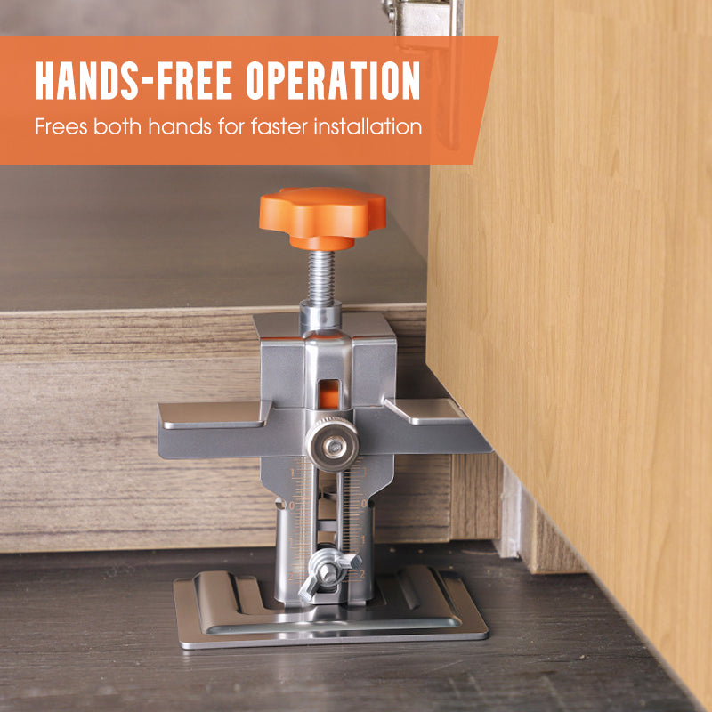 HANDSFREE BEDIENING - Het veilige klemmechanisme houdt de kastdeur stevig in de gewenste positie, waardoor beide handen vrij zijn om efficiënt te boren en te schroeven, wat de installatiesnelheid aanzienlijk verhoogt.