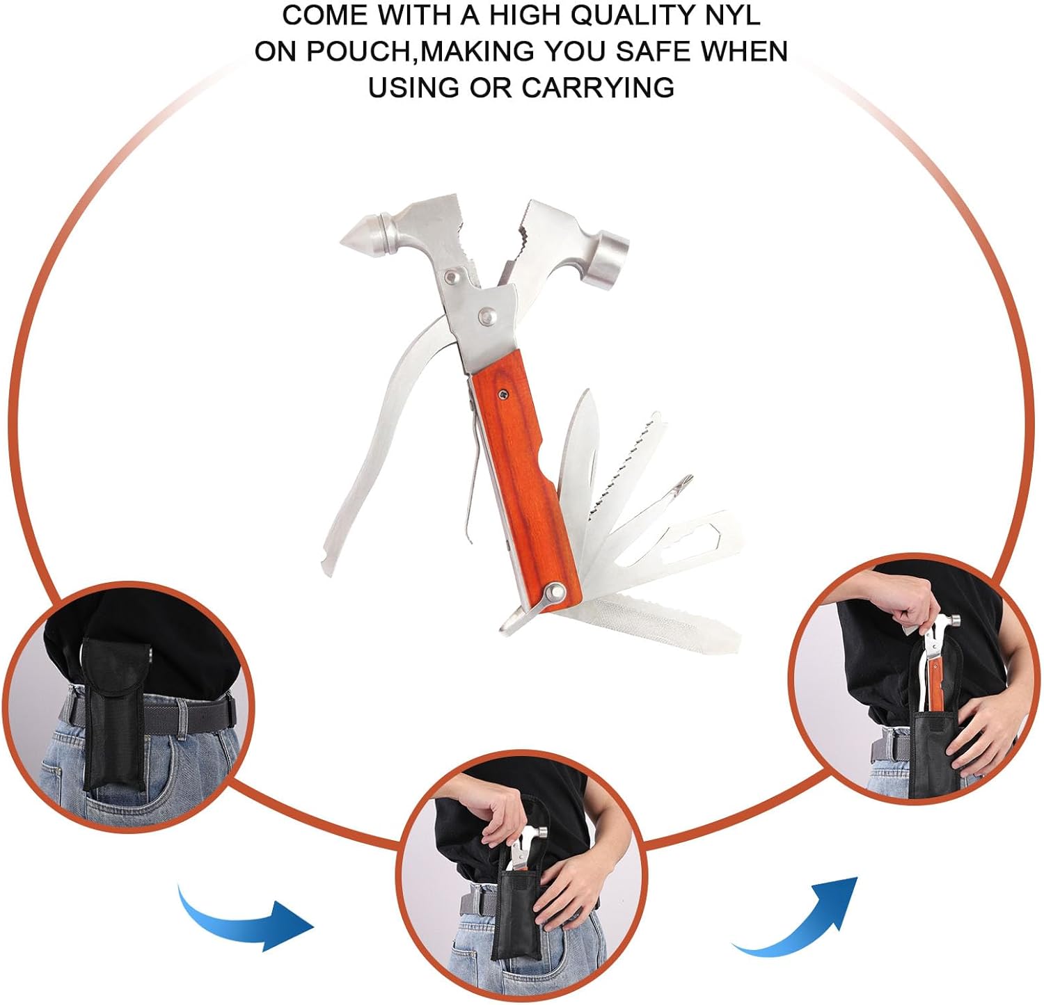 【Outdoor Gear Heavy Duty】Gemaakt van roestvrij staal met een rood geanodiseerde aluminium handgreep, is het gemakkelijk te gebruiken en ligt het comfortabel in de hand. Sterk genoeg om te snijden, te wrikken, spijkers te slaan, schroeven vast te draaien, brandkranen te openen en hout te zagen.