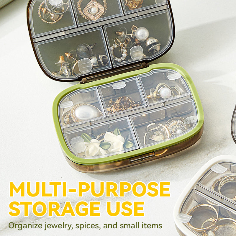 MULTIFUNCTIONELE OPSLAGCAPACITEIT- Naast het organiseren van pillen, kunnen in de verwijderbare compartimenten perfect sieraden zoals oorbellen en ringen, kruiden tijdens het reizen, naaigerei en andere kleine benodigdheden worden opgeborgen. De luchtdichte afsluiting houdt de inhoud veilig en beschermd tegen vocht en lucht.