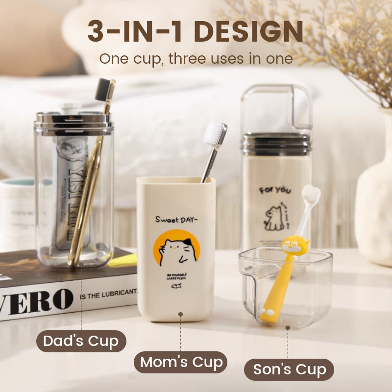 3-IN-1 MULTIFUNCTIONEEL ONTWERP - 3-in-1 multifunctioneel ontwerp - Verandert in drie afzonderlijke kopjes, ideaal voor persoonlijke hygiënebehoeften voor drie personen, die volledig voldoen aan uw dagelijkse hygiëne-eisen voor reizen.