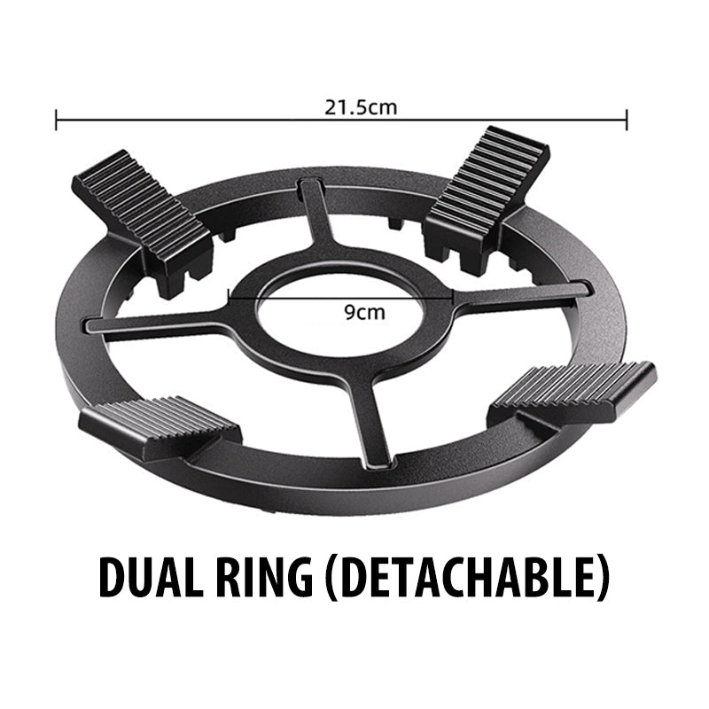 AFNEEMBARE BINNENRING – Het rek beschikt over een afneembare binnenring die verstelbaar is voor kleinere pannen en zorgt voor stabiliteit tijdens het koken. Dit twee-in-één ontwerp maakt veelzijdig gebruik mogelijk. De schuine hoeken sluiten aan op de vorm van de pan, maximaliseren het contact voor een gelijkmatige warmteverdeling en zijn perfect voor zowel ronde als puntbodem-pannen.