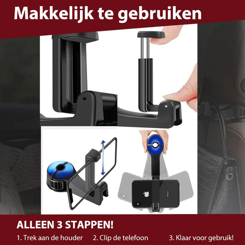 Kledinghaak en telefoonhouder voor autohoofdsteun