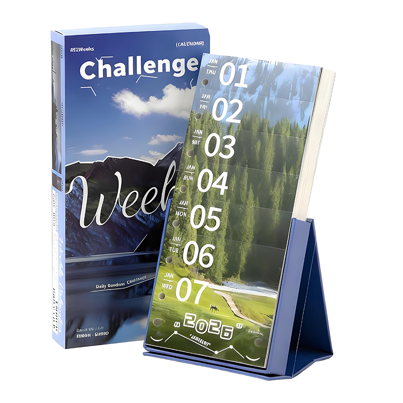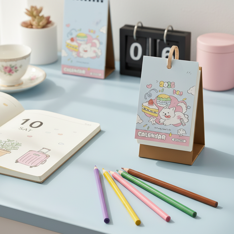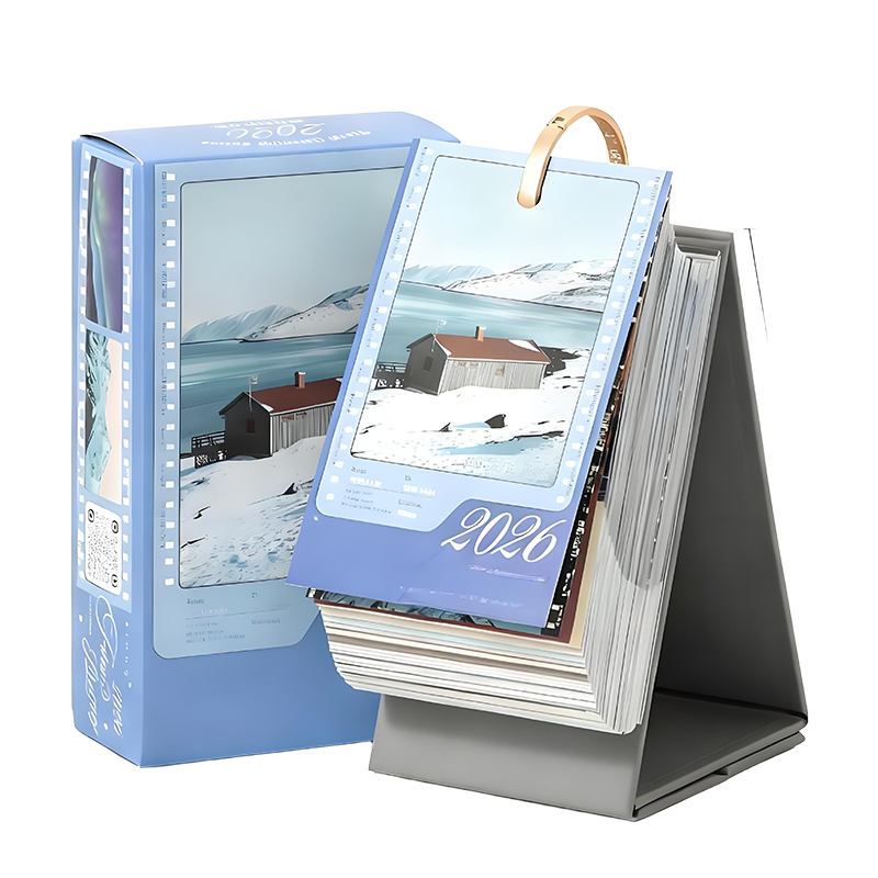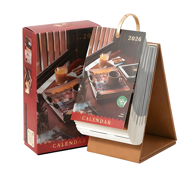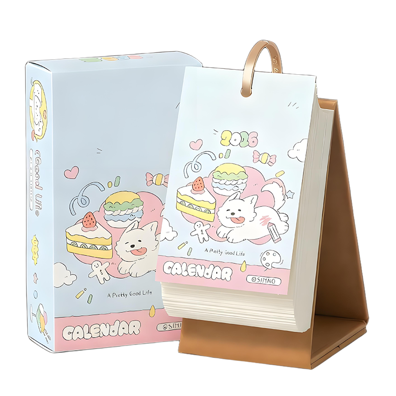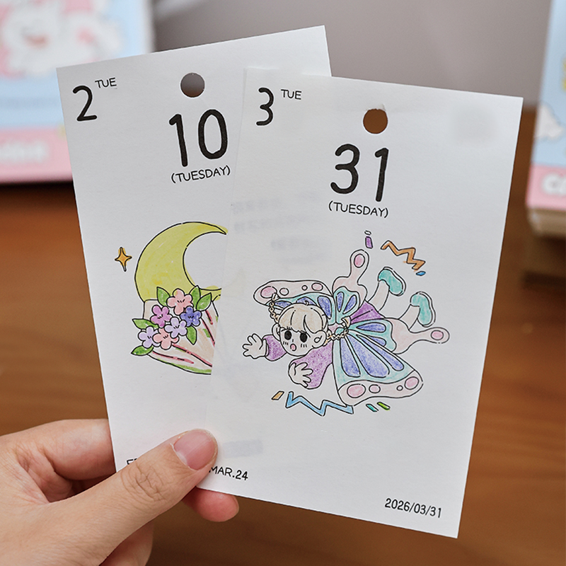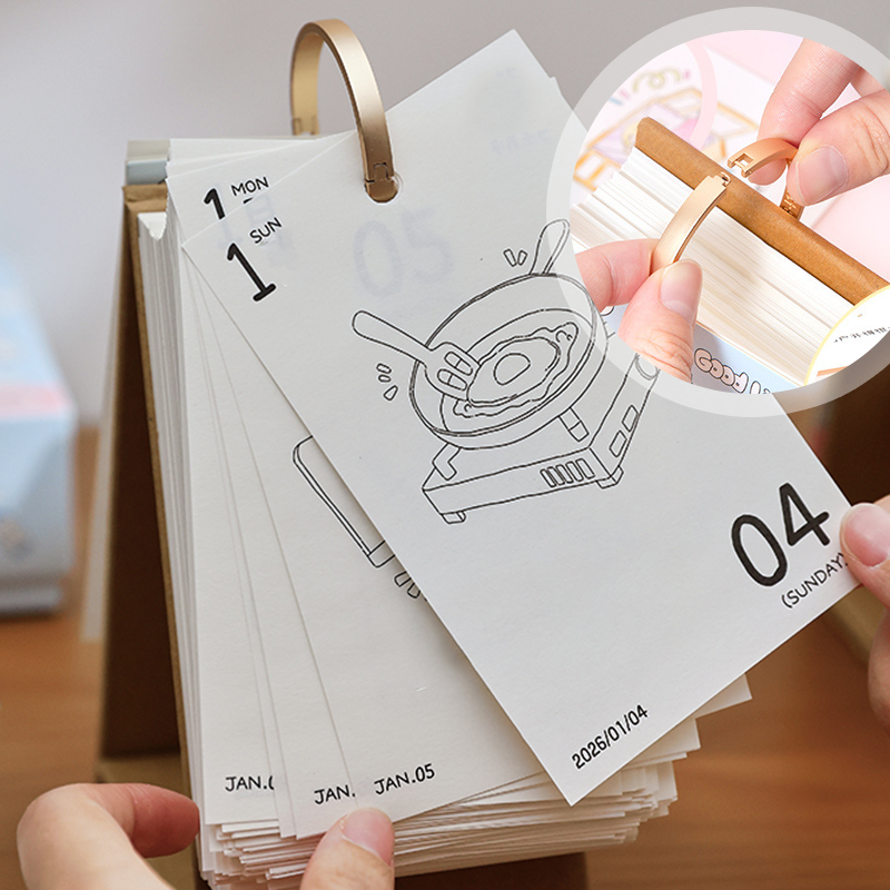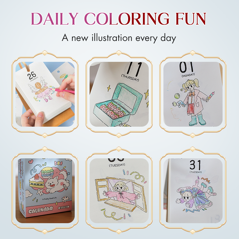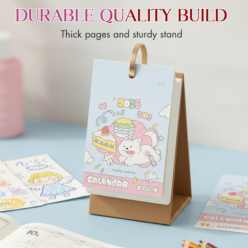 GEMAAKT OM LANG MEE TE GAAN, GEMAAKT OM VAN TE GENIETEN - Deze kalender is gemaakt van hoogwaardig kleurpapier en heeft een stevige driehoekige standaard, waardoor hij helder en stabiel blijft en klaar is voor dagelijkse creativiteit. De dikke pagina's houden de kleuren helder zonder uit te lopen, terwijl je met de soepele metalen ringen gemakkelijk kunt bladeren of je favorieten kunt laten zien.